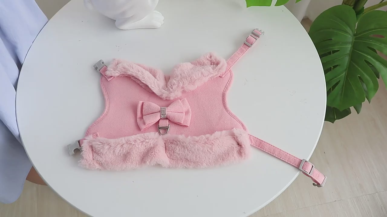 Ge din fyrbenta vän både värme och stil med denna söta vintersele i mjuk bomull. Den är justerbar för perfekt passform och har en dekorativ rosett som gör varje promenad lite finare. Selen är vadderad, bekväm och enkel att ta på, medan det matchande kopplet gör att ni kan ge er ut direkt. Passar små till medelstora hundar och katter – idealisk för raser som Yorkshireterrier, Chihuahua eller dvärgkanin.